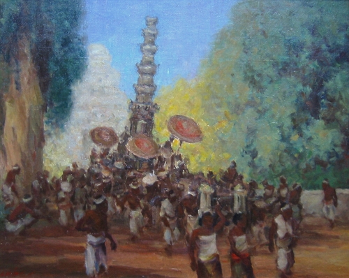Olieverf op doek, 40 x 40 cm, gesigneerd Bali 1954.